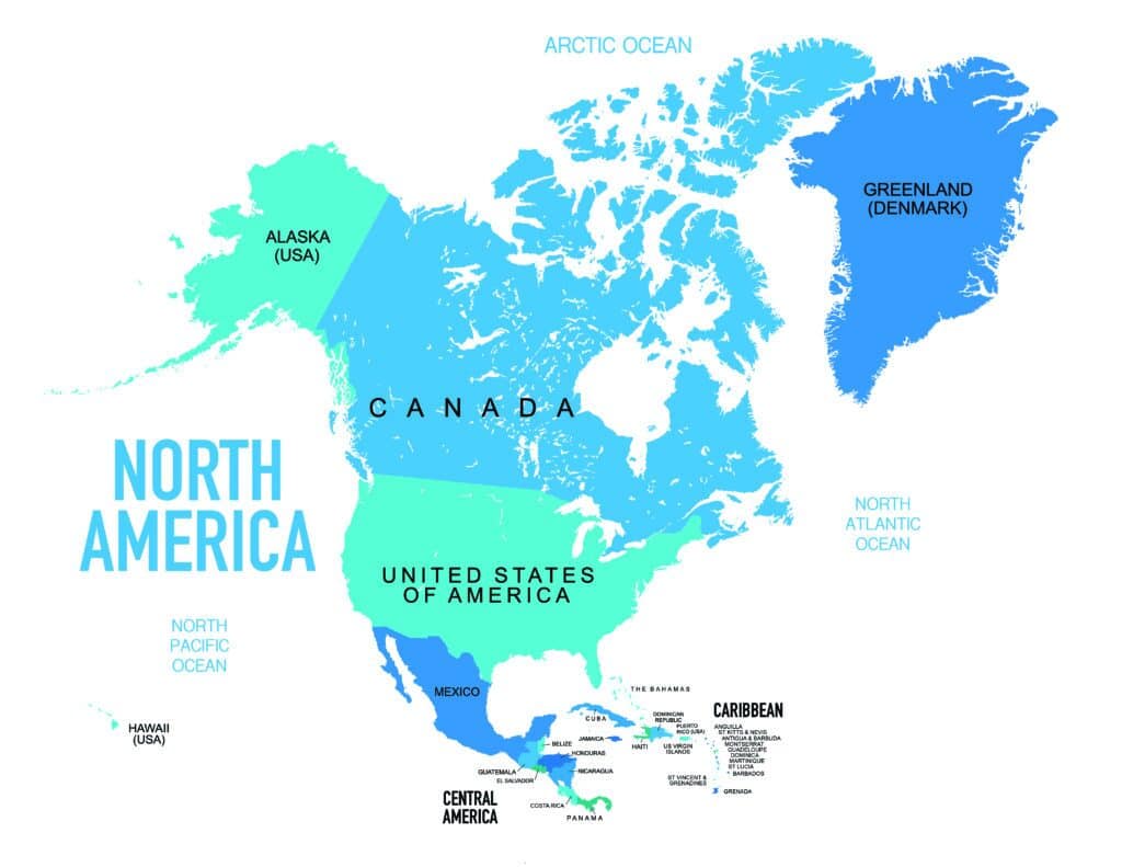 North America : United States of America  Canada  Mexico.